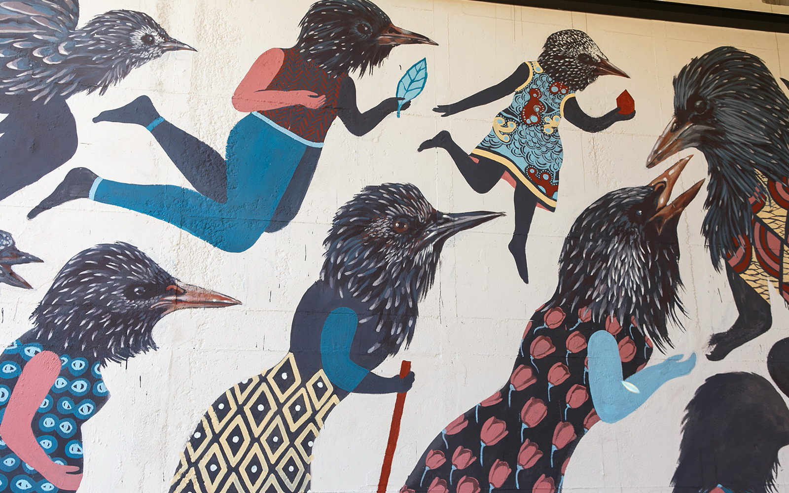 Migrare per vivere è un diritto naturale Nasce da questa riflessione il progetto Specie Migranti che da circa due anni stiamo portando avanti in vari paesi italiani. Dopo alcuni lavori realizzati insieme, in particolare lo scuolabus di Cupramontana e “L’arca dei saperi” all'interno dell'Università di Siena, abbiamo iniziato a pensare a come poter parlare di questa delicata tematica unendo i nostri due differenti linguaggi e abbiamo messo a fuoco il progetto “Specie migranti”. In un momento storico in cui, nonostante l'estremo bisogno di un dialogo politico collettivo pubblico, molta arte urbana (ma non solo), si rifugia, a nostro avviso, in un decorativismo più orientato ad una visione di “concordia” ed “equilibrio” architettonico e sociale, il progetto “Specie migranti” vuole allacciarsi ad una tradizione muralista in cui tornino in primo piano le storie di chi la strada la vive e l'urgenza di raccontarle. Sentiamo molto forte il bisogno di distaccarci dalla concezione bi-dimensionale che i media stanno costruendo dei migranti, quasi fossero una massa appiattita, un'immagine da cartolina sbiadita o peggio, da locandina di film catastrofico. Troviamo rivoltante, quasi da avere fastidio ad usarli, la banalizzazione che molti termini quali “migrante”, “richiedente asilo”, “clandestino”, etc. stanno subendo per un'operazione di demonizzazione mass-mediatica. In questa direzione, Specie Migranti vuole essere un'indagine sia dentro noi stessi e i preconcetti derivanti dall'essere nostro malgrado inseriti in questo flusso di pensiero, che all'interno delle storie delle persone che per scelta, bisogno, necessità cambiano luogo in cui vivere. Migrare: gli animali lo fanno ad ogni stagione, si spostano per trovare luoghi dove possono vivere meglio, se in inverno rimanessero nei posti freddi morirebbero e piano piano la loro specie si estinguerebbe. Migrare è una cosa naturale, un passaggio semplice e automatico, innato; dovrebbe essere un diritto universale, di tutte le specie viventi; perché per l’uomo deve essere una condanna? Per portare questo messaggio dappertutto, abbiamo trasformato questa idea in un progetto itinerante site-specific, infatti ogni volta studiamo gli animali migratori del posto dove realizzeremo il murale e li “mixiamo” con texture ed elementi tipici di popolazioni migranti che abitano quelle zone. Fino ad oggi abbiamo realizzato 5 murales della serie Specie Migranti.
